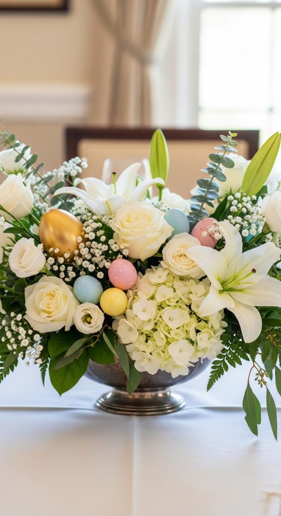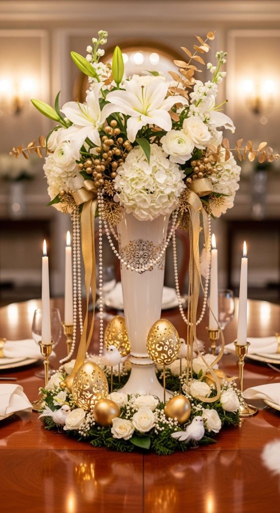 19. Gold and White Elegant Easter Centerpiece