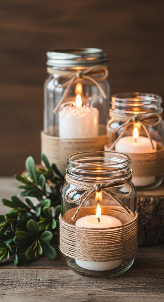 18. Rustic Mason Jar Candle Holders