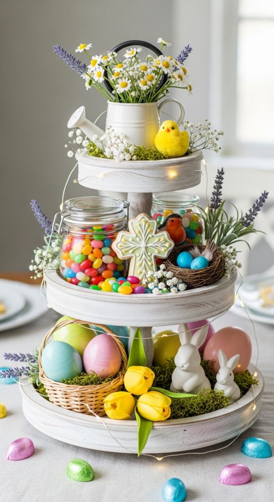 5. Tiered Tray Easter Table Centerpiece