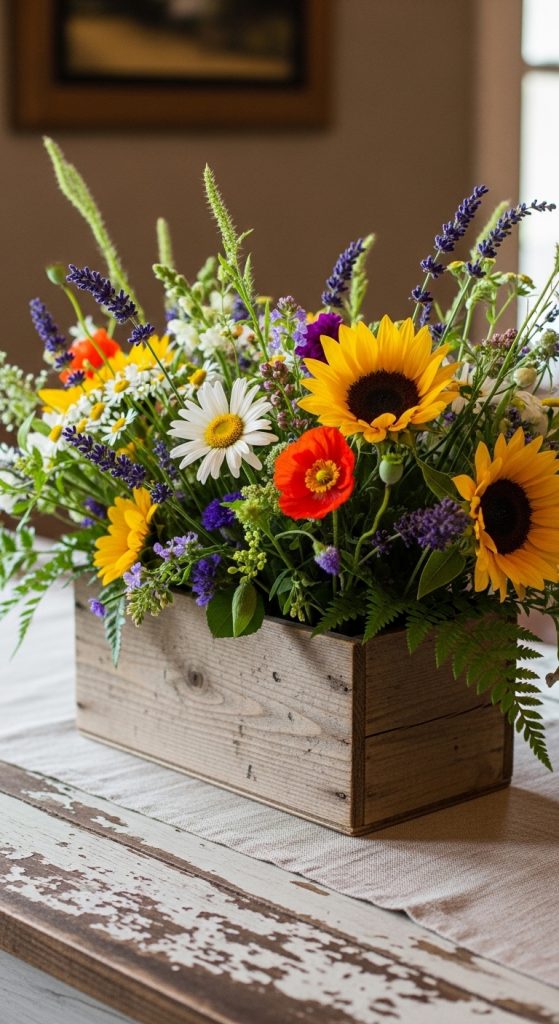 4. Rustic Wooden Box Floral Centerpiece